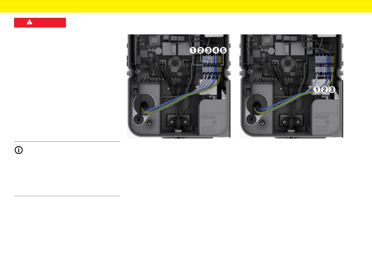3 PE (vert/jaune) dans la borne 1 (vert/jaune)