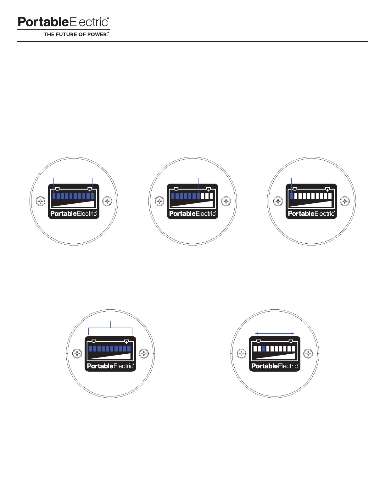 The Type 1 Battery Monitor has ten blue LEDs. Full illumination of the ten LED’s indicates 100% State of Charge.