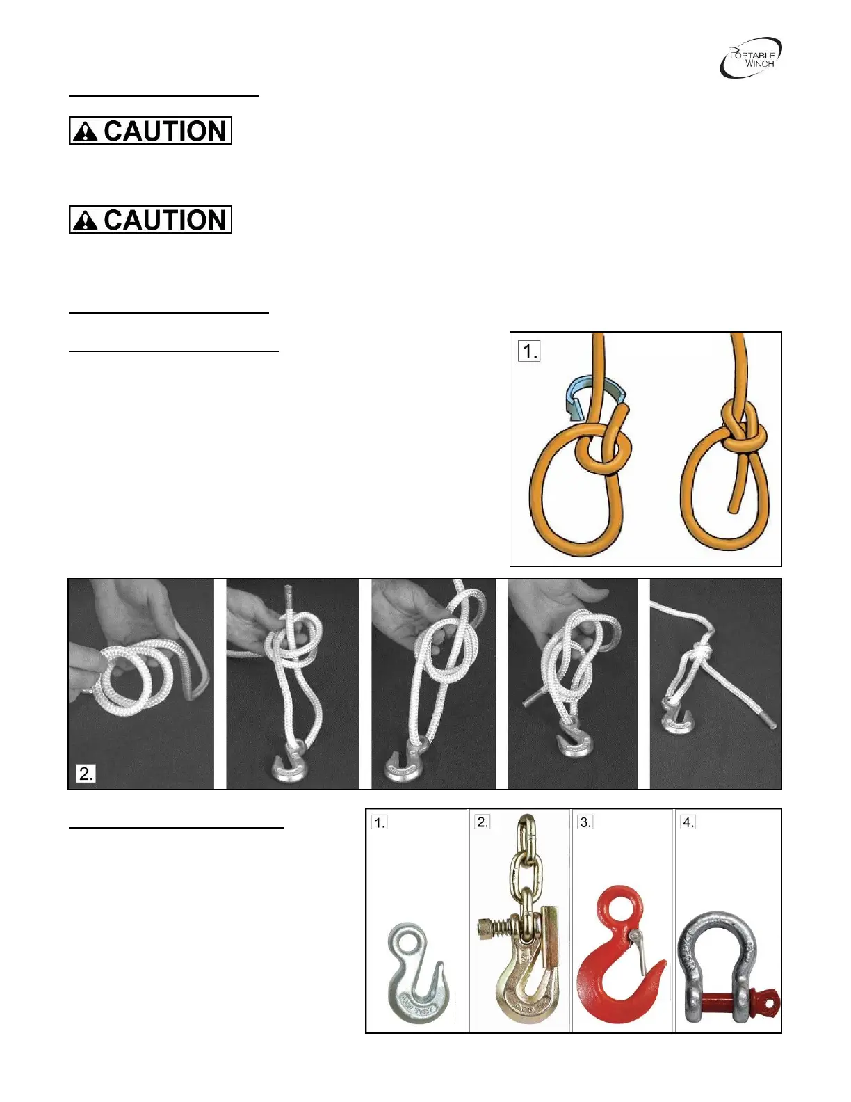 installation of a hook with the bowline knot (figure 1 on the