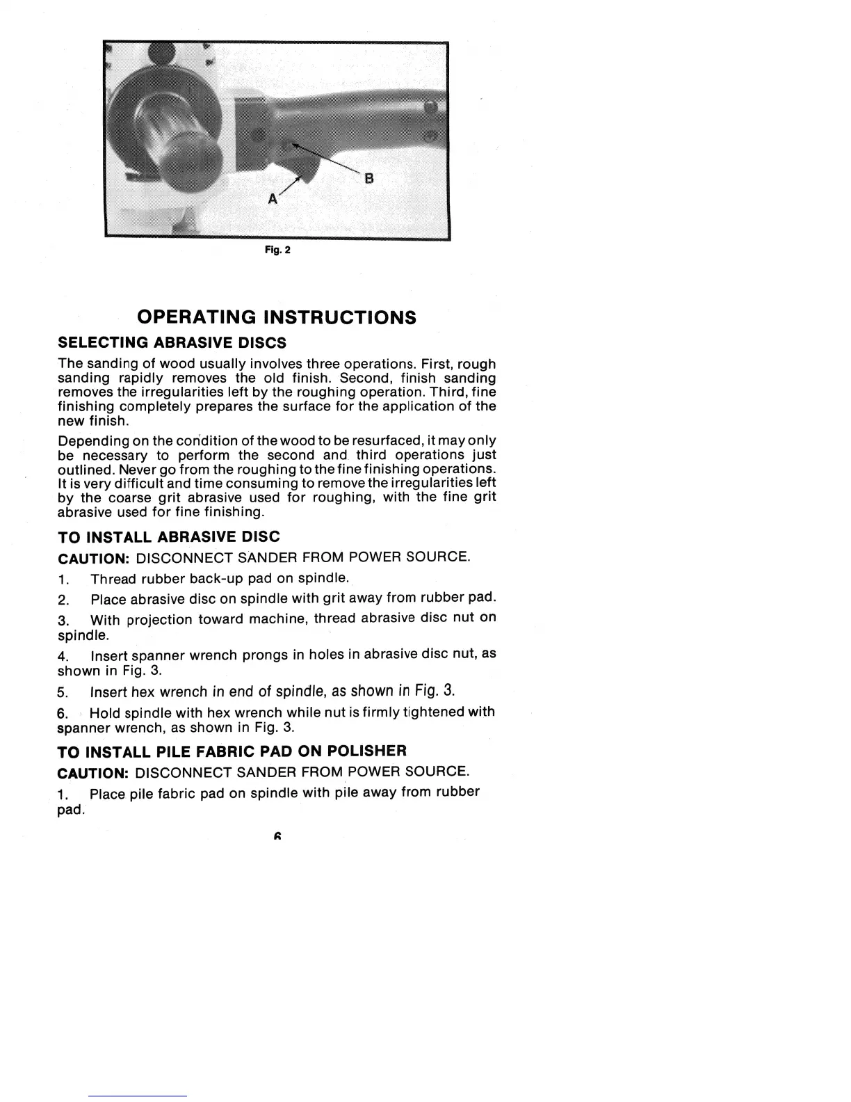 Porter-Cable 304 - Operating Instructions; Selecting and Installing Abrasive Discs; Installing Polisher Pads