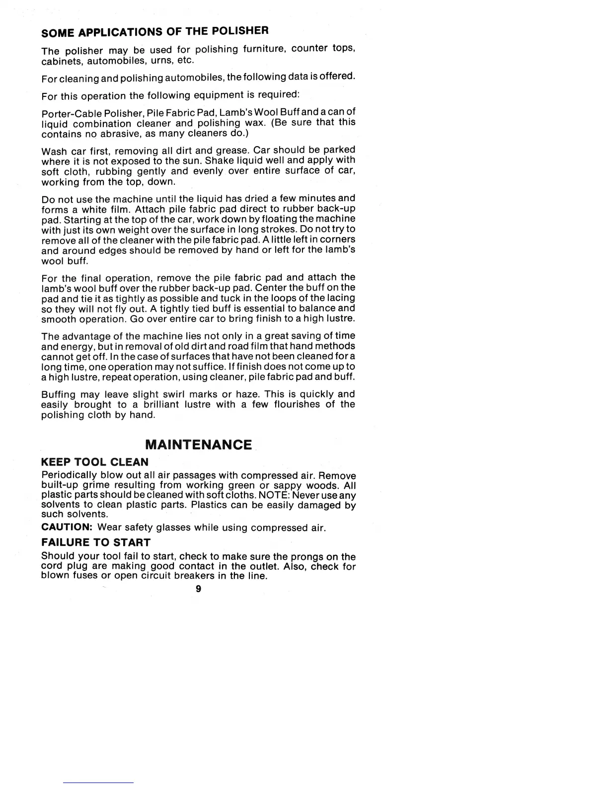 Porter-Cable 304 - Polisher Applications; Maintenance and Troubleshooting; Troubleshooting: Failure to Start