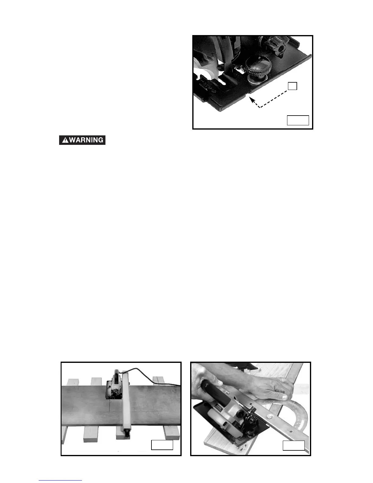 Use a fence or a straight edge guide when ripping. DO NOT force the tool.