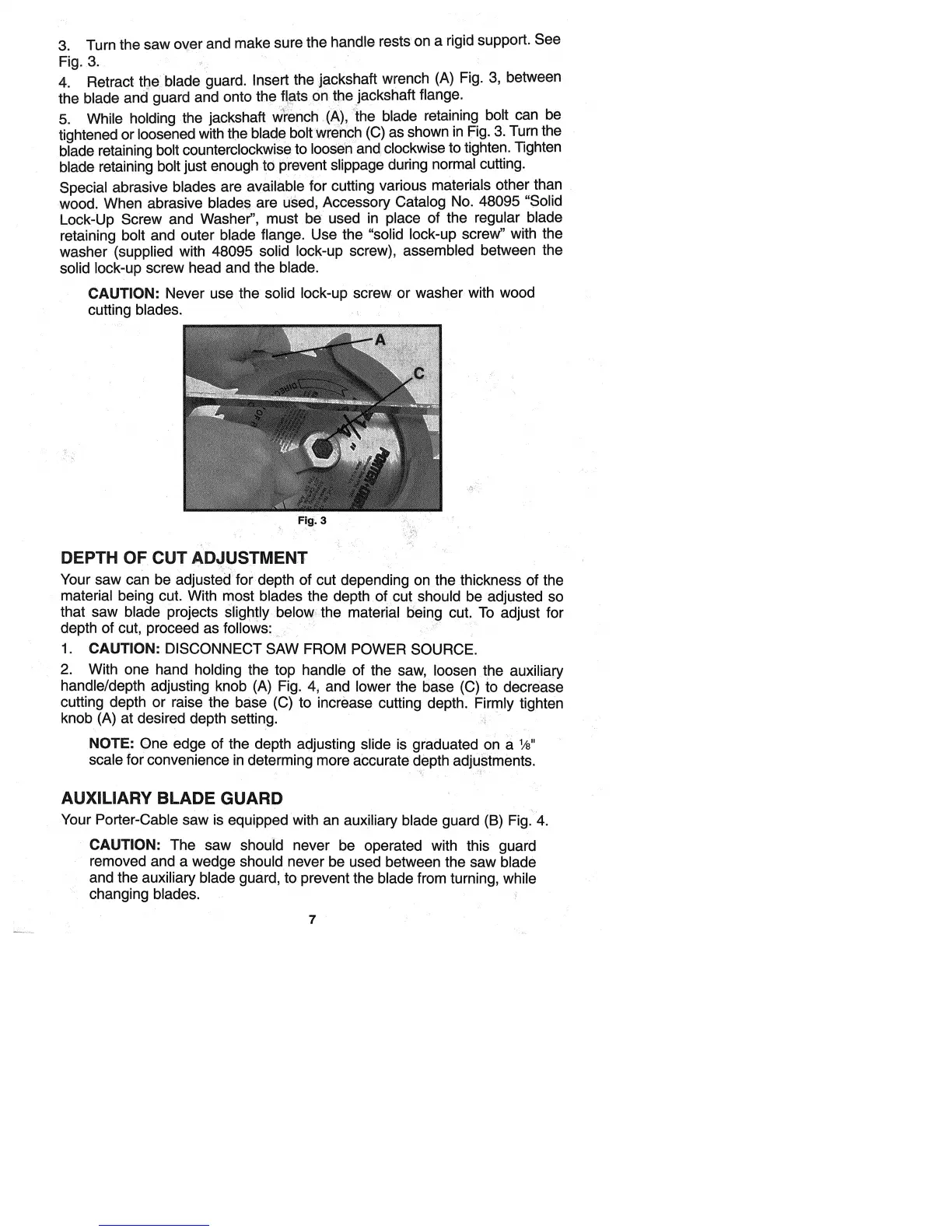 Porter-Cable 315-1 - DEPTH OF CUT ADJUSTMENT; AUXILIARY BLADE GUARD