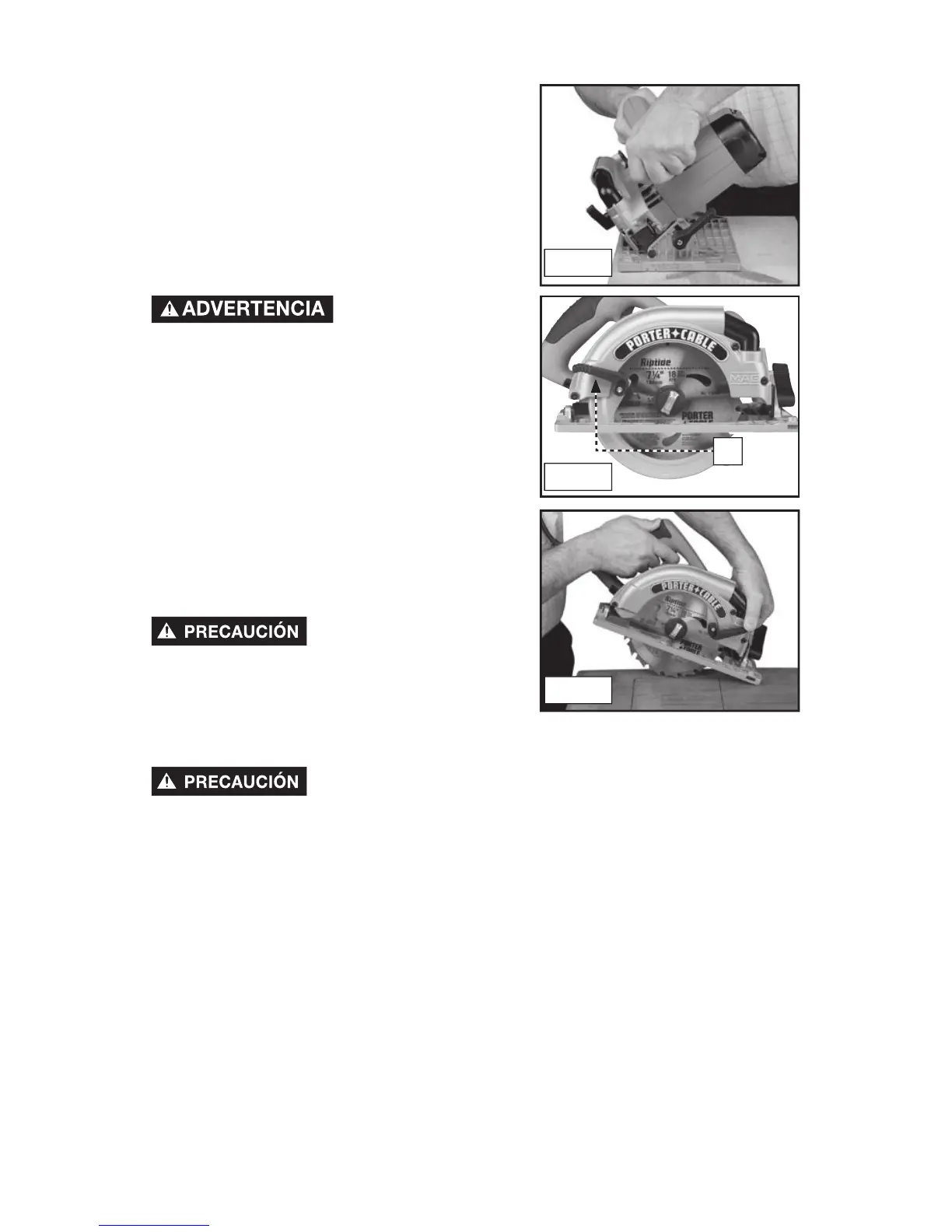 Incline la sierra de manera de que el disco no