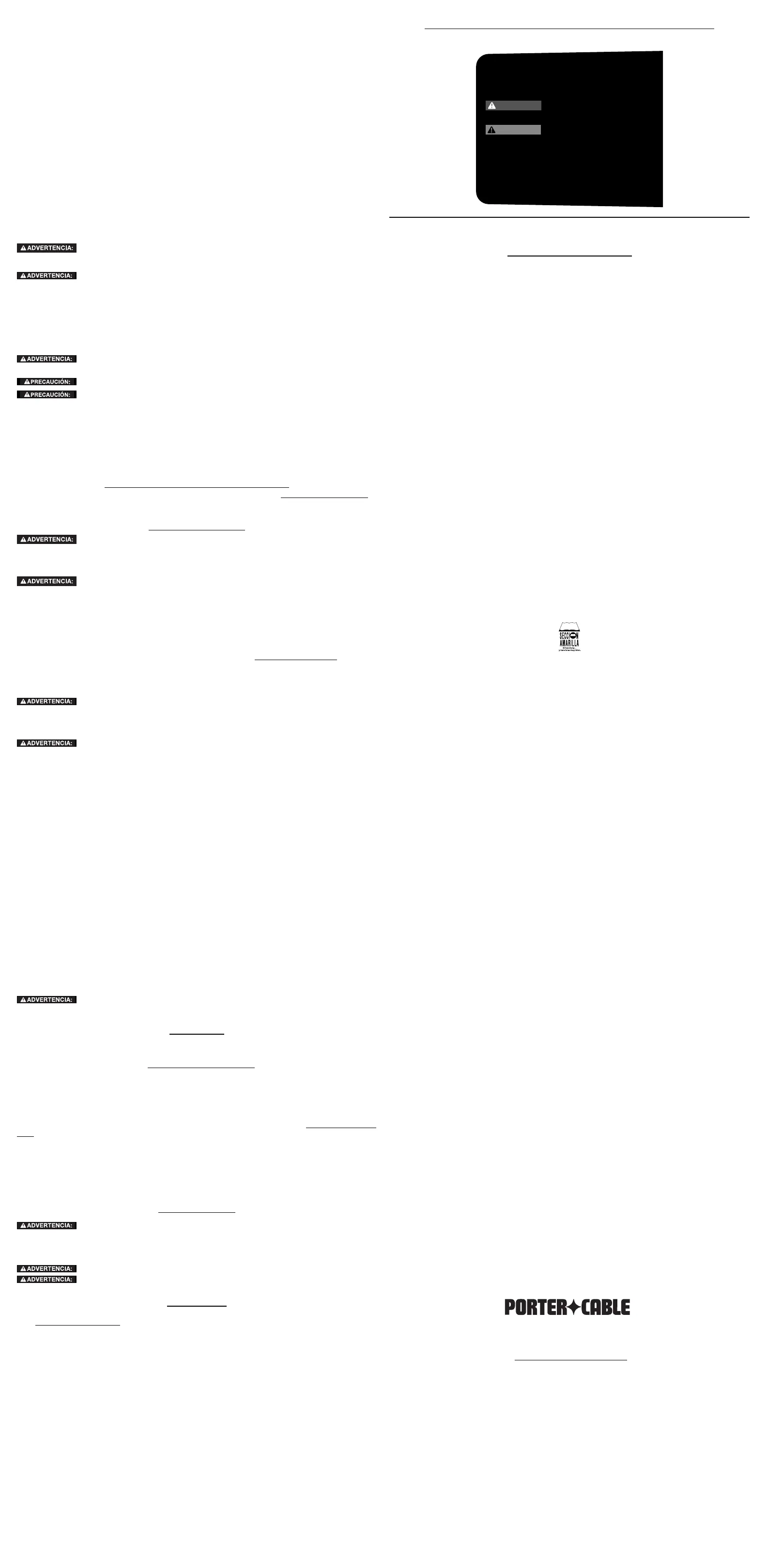Para obtener ayuda con su herramienta, visite nuestro sitio Web www.porter-cable.com y obtenga