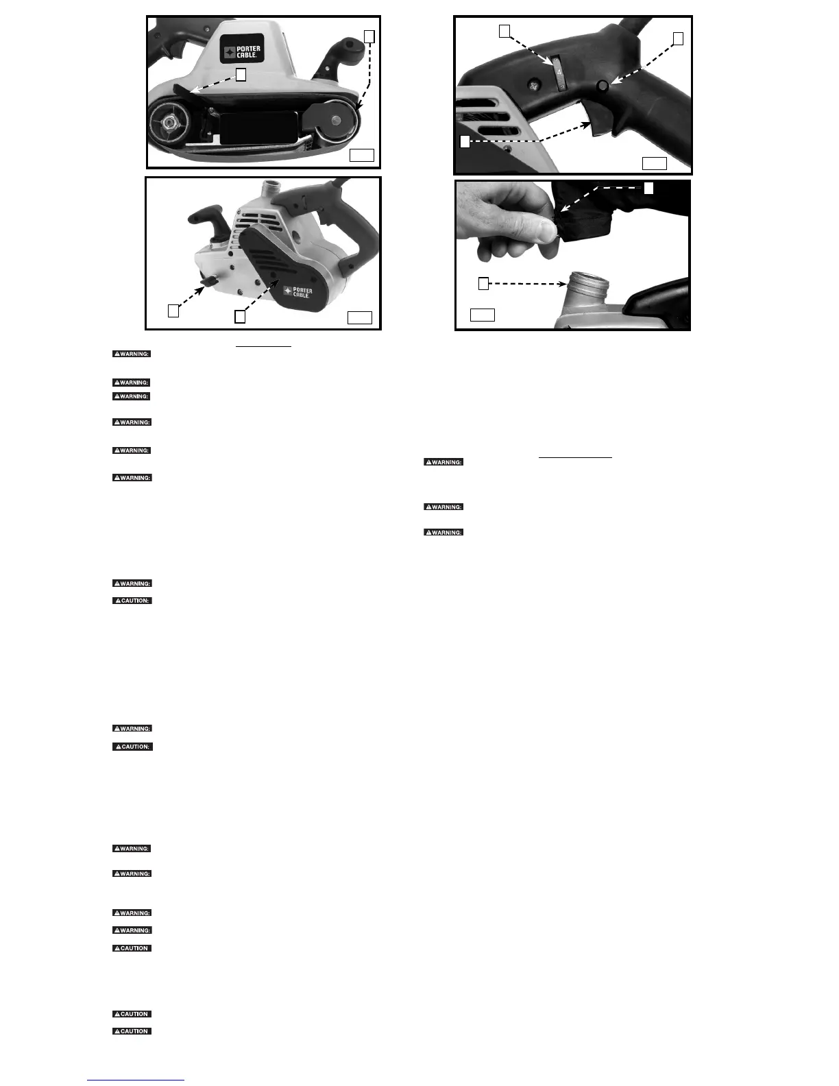 To prevent excessive wear on both the sander and belt, NEVER allow the abrasive belt to rub on