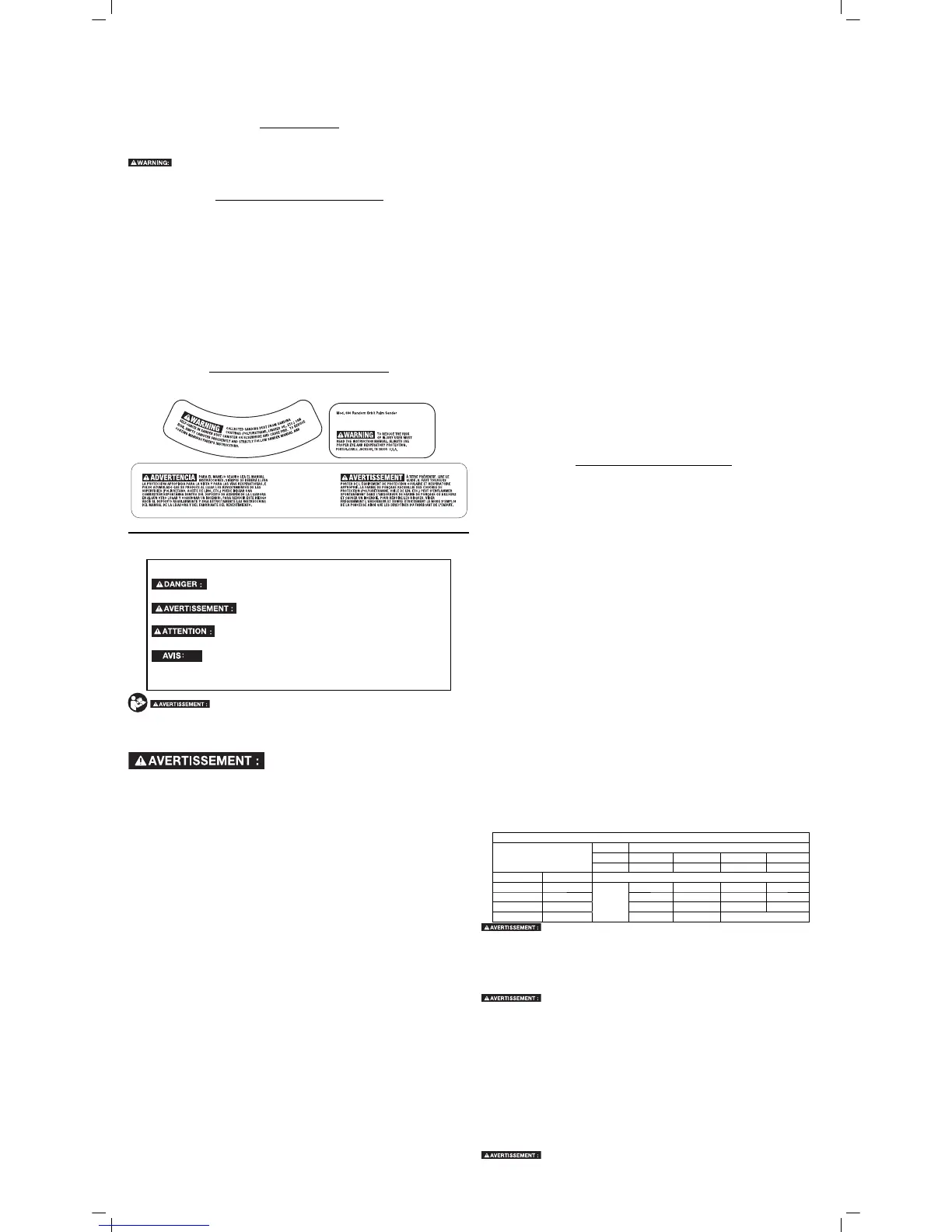 • Pour la sécurité de l’utilisateur, utiliser une rallonge de calibre adéquat (AWG,