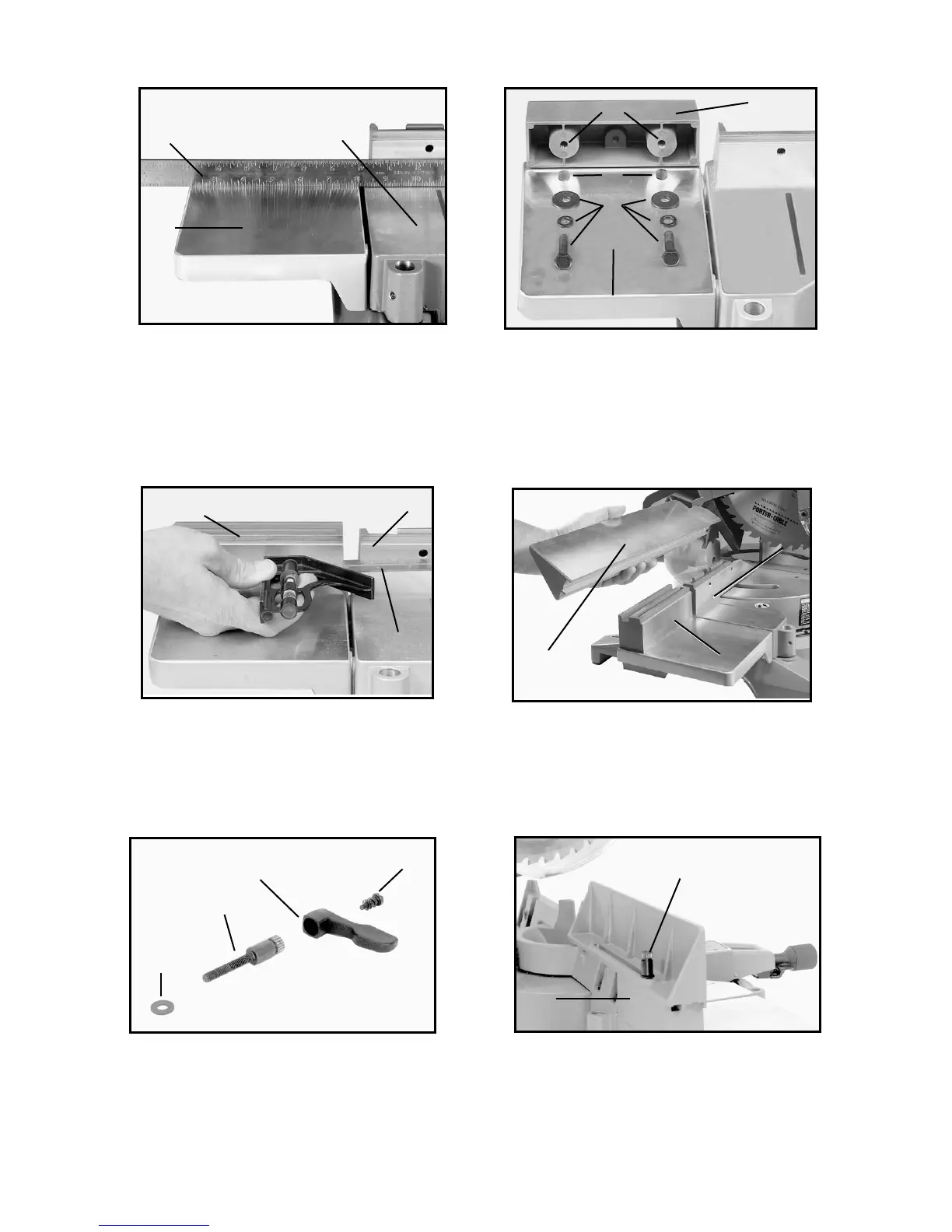 4. Attach the fence slide support (E) Fig. 7D, to the extension table (B) by using the two 1 1/4” long hex head