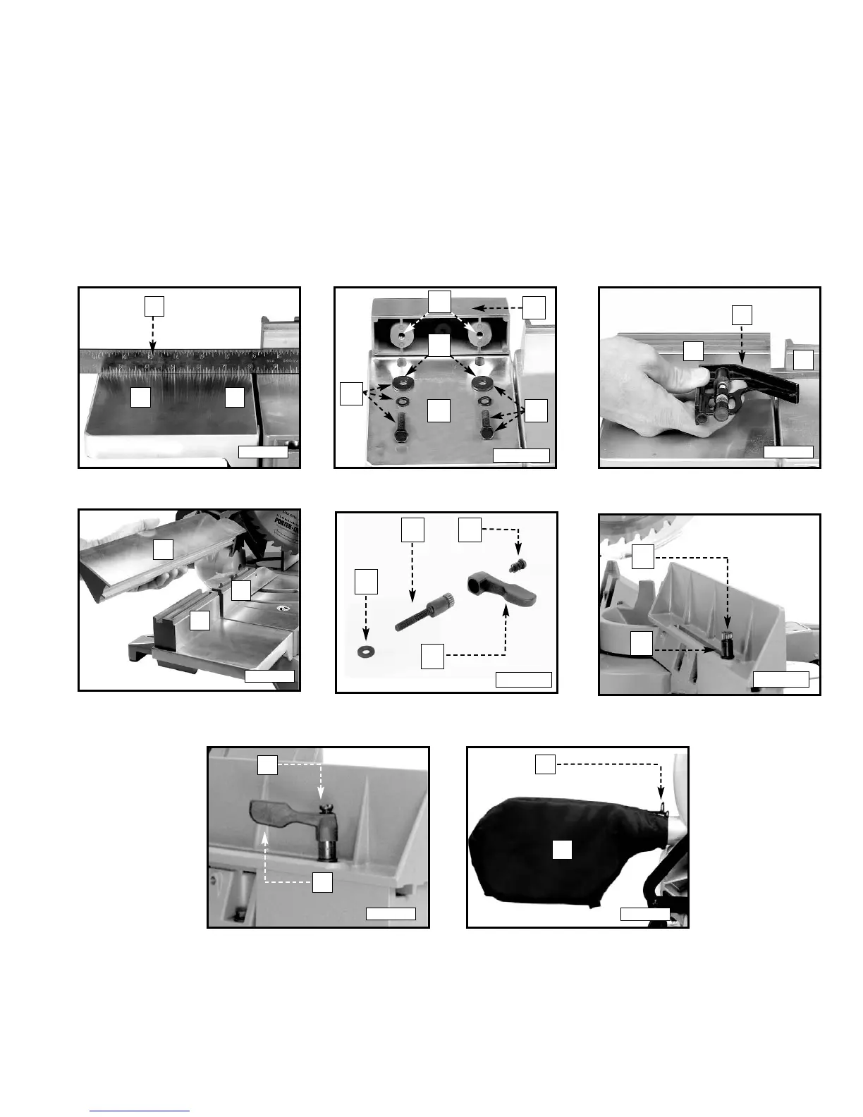 4. Attach the fence slide support (E) Fig. 11 to the extension table (B) by using the two 5/16-18 x1-1/4” hex head screws,