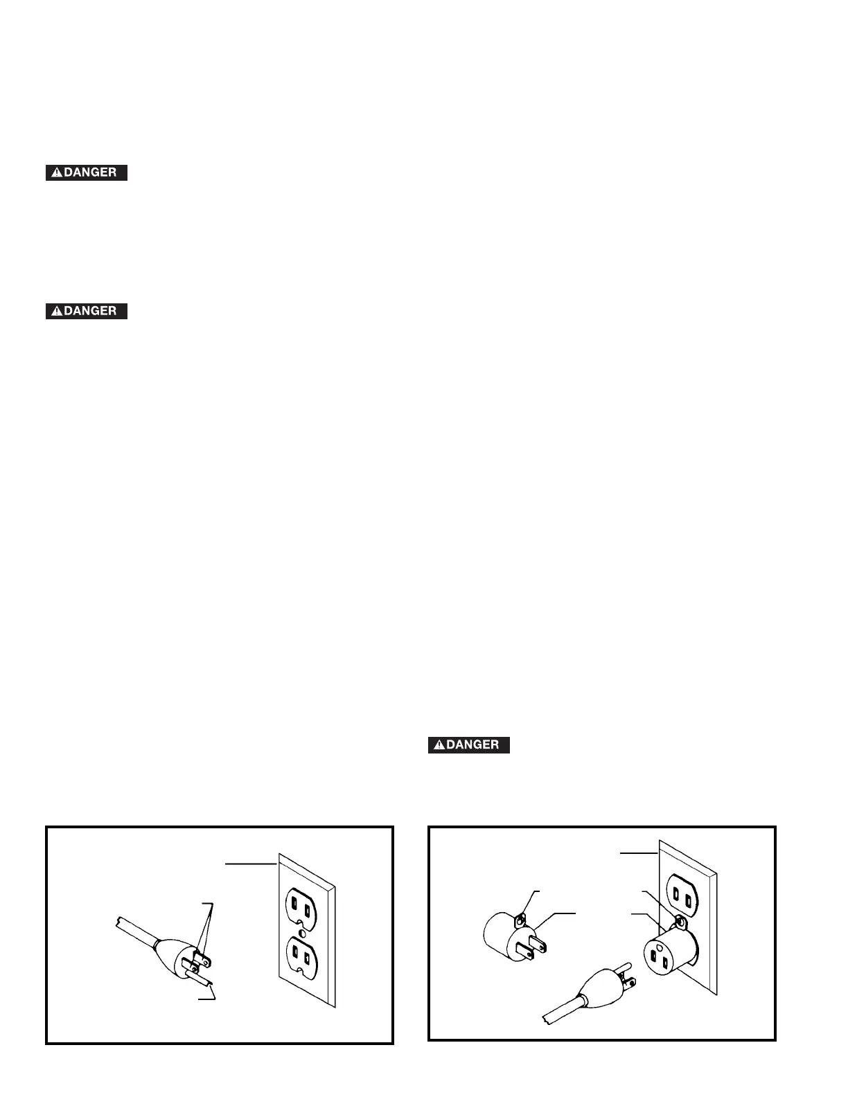 prong grounding type plugs and matching receptacle which will accept the machine’s plug. Before connecting the