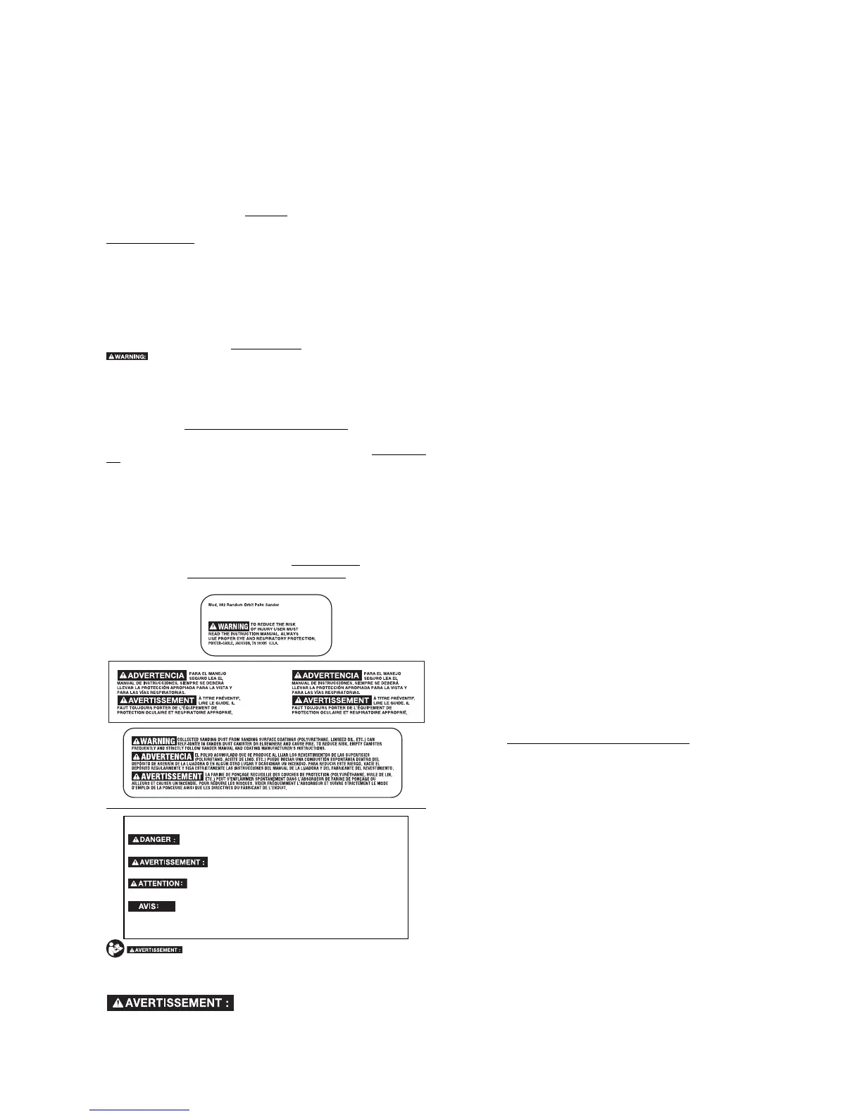 • NE PAS PONCER DE SURFACES MÉTALLIQUES DE TOUT TYPE AVEC LA PONCEUSE.