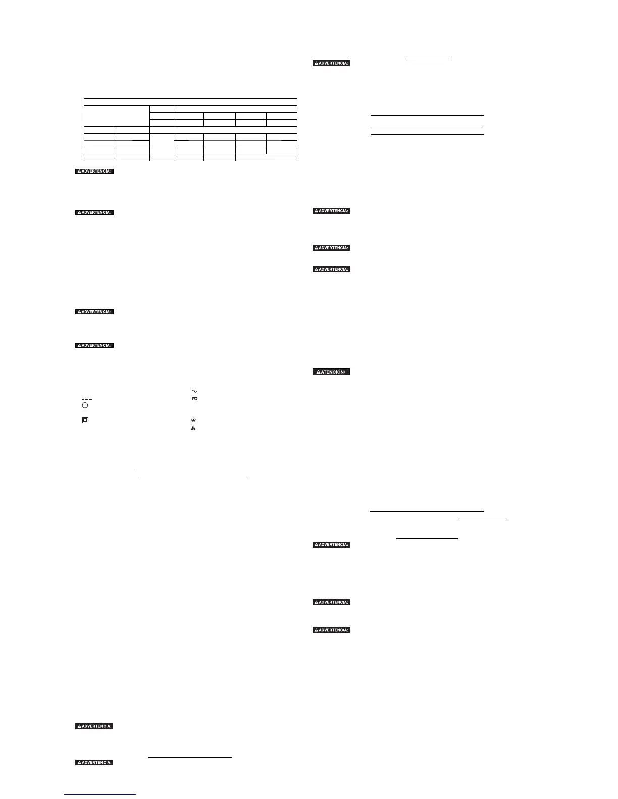 • Los hilos del alargador deben ser de un calibre apropiado (AWG o American Wire