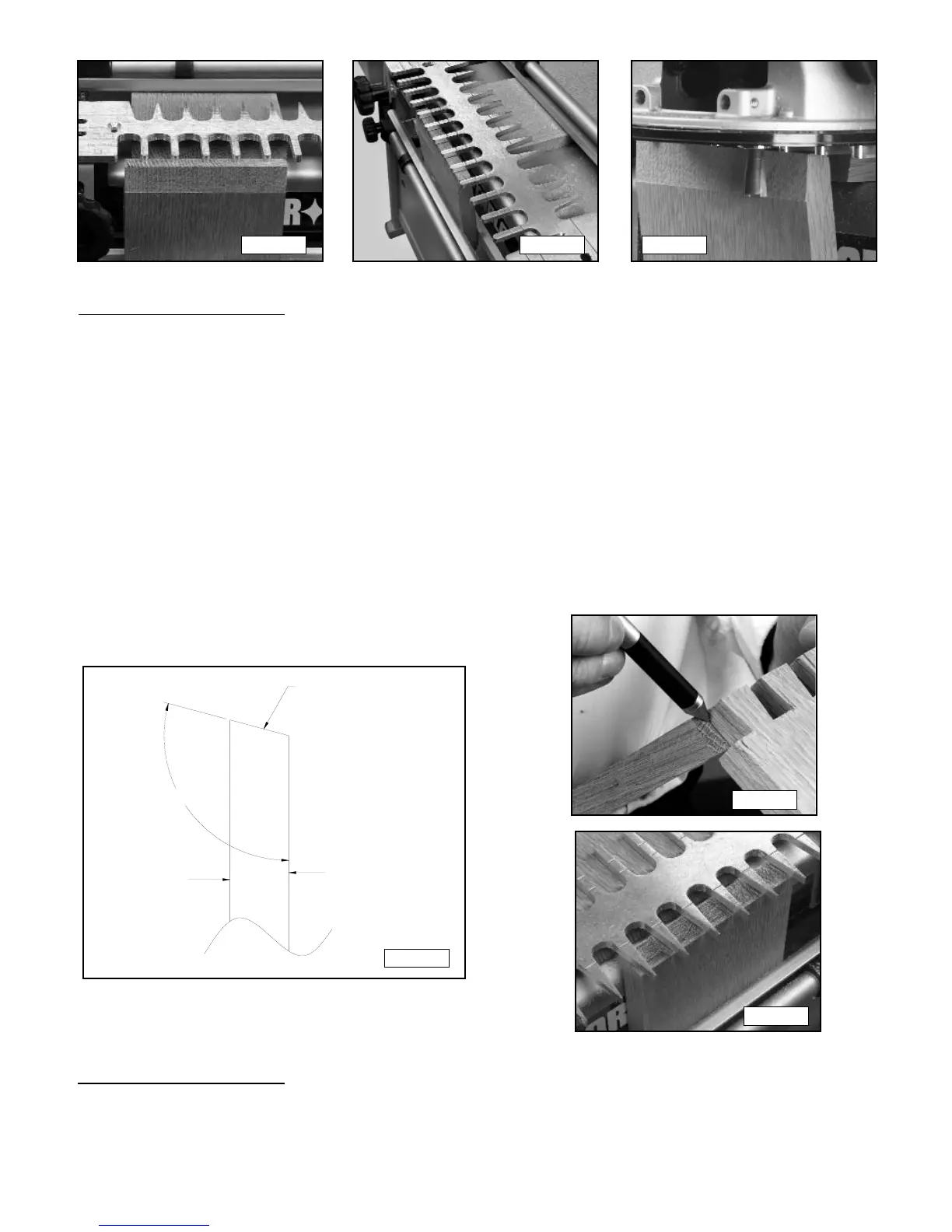 Fitting the joint is the same as fitting the standard dovetail. With the angled template fingers facing you, move the
