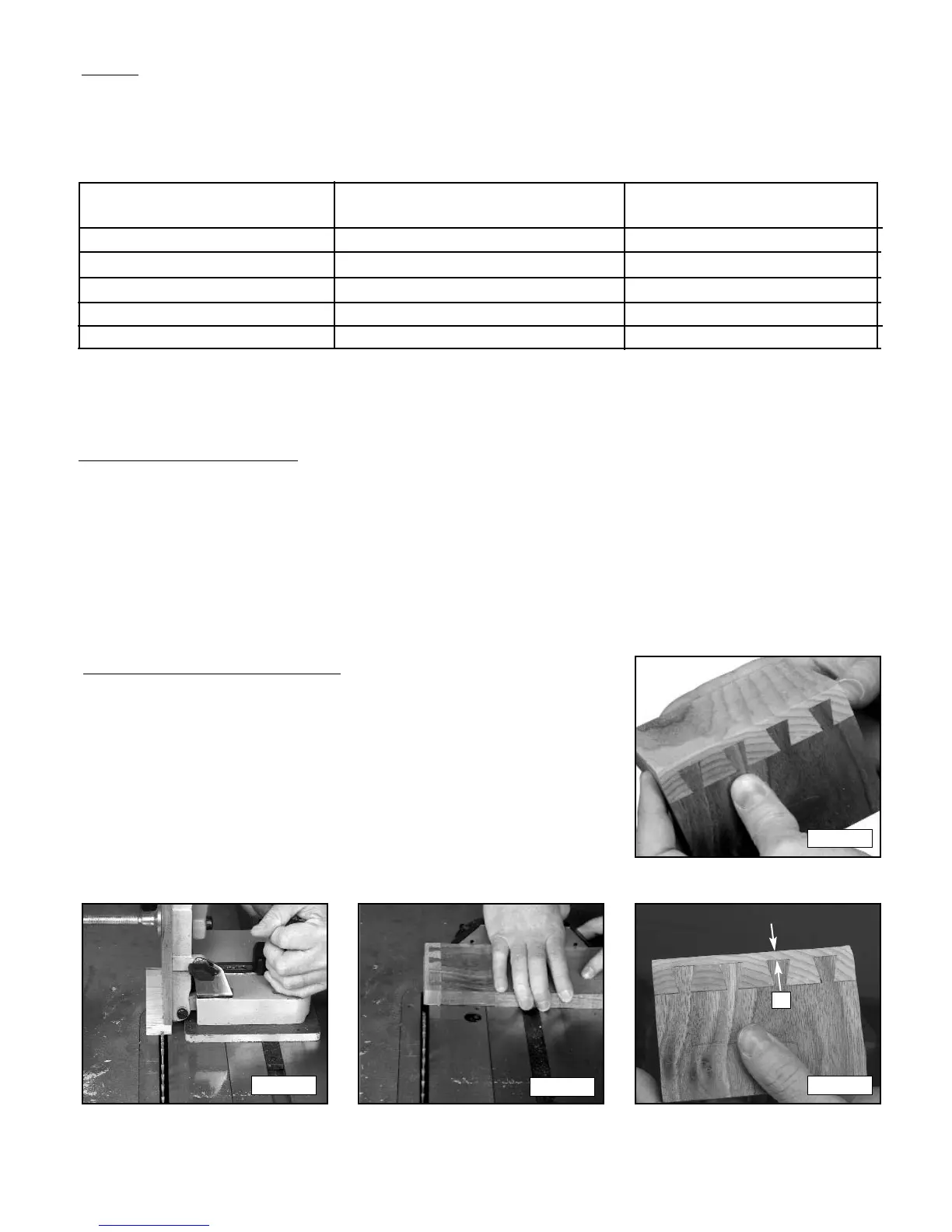 separately in the section"TABLES OF COMMONLY AVAILABLE ROUTER BIT SIZES". Use the following table to