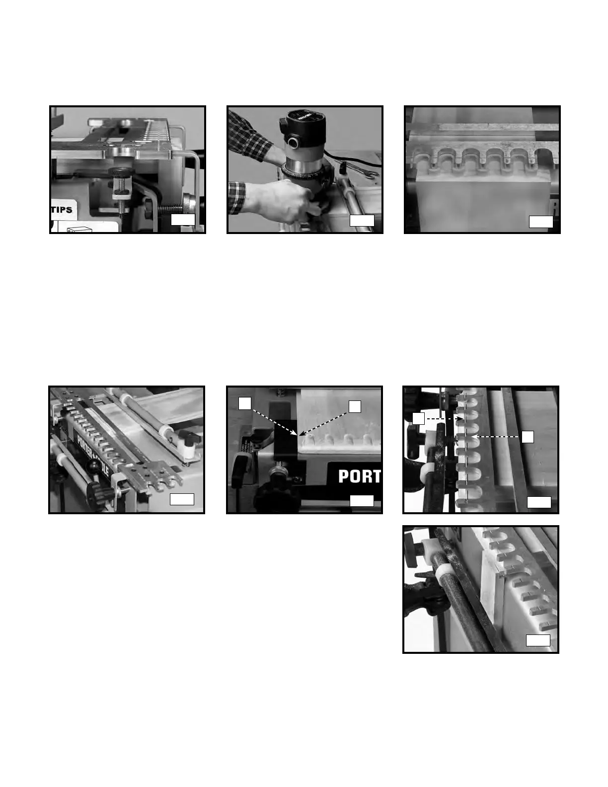 the rabbet (A) Fig. R11 is aligned with the “half-blind” alignment line (B). Lower the router bit on the depth