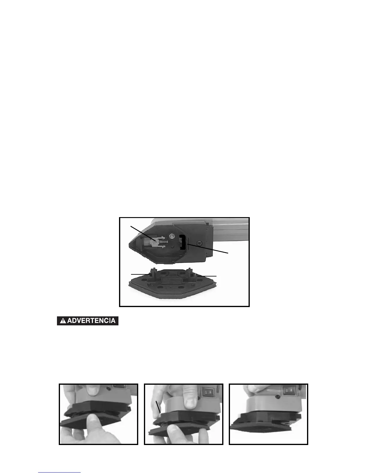 Uno de los pernos del cojín entra a un hoyito (B) Fig. 7, de la Lijadora de