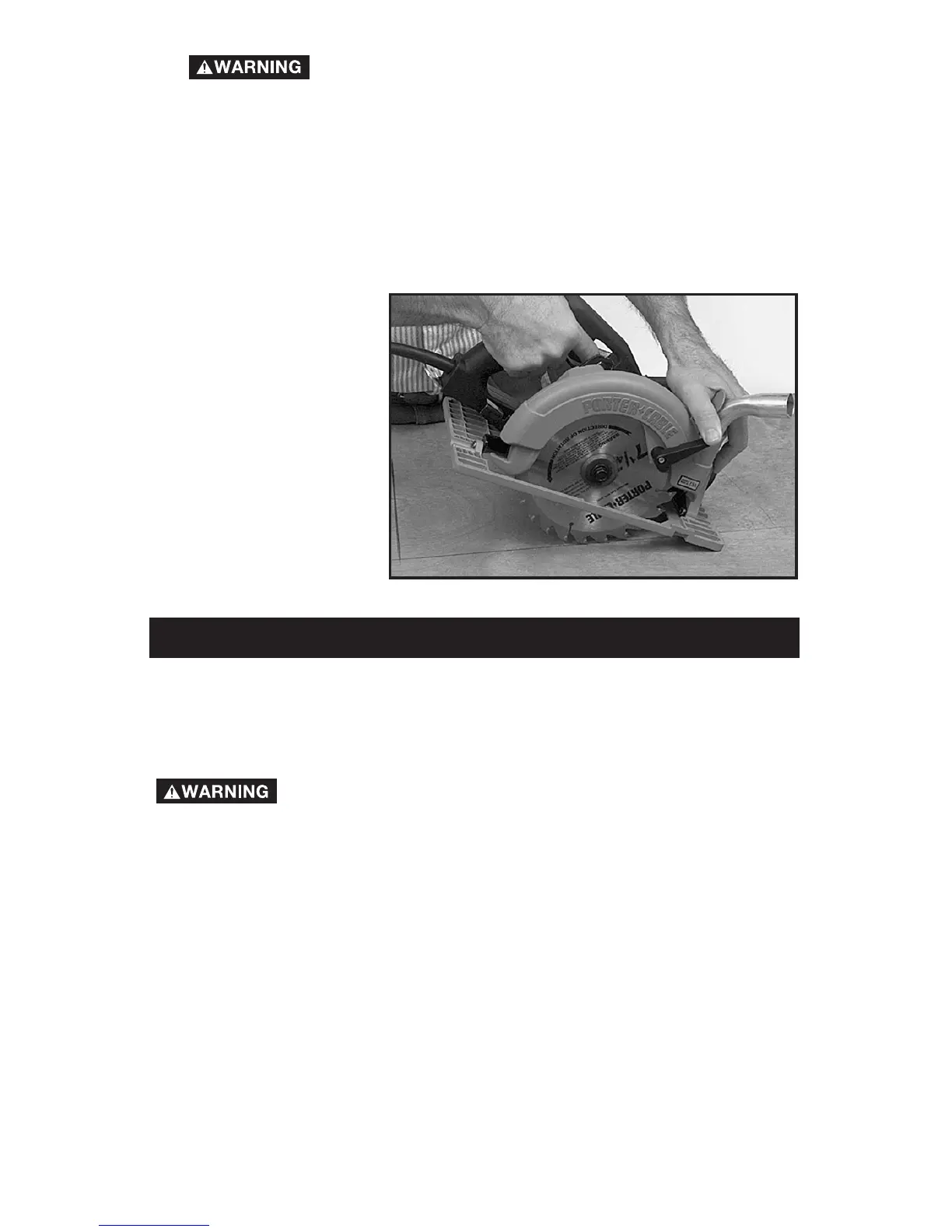 work. Hold saw up so blade clears the material. Be sure you have adjusted