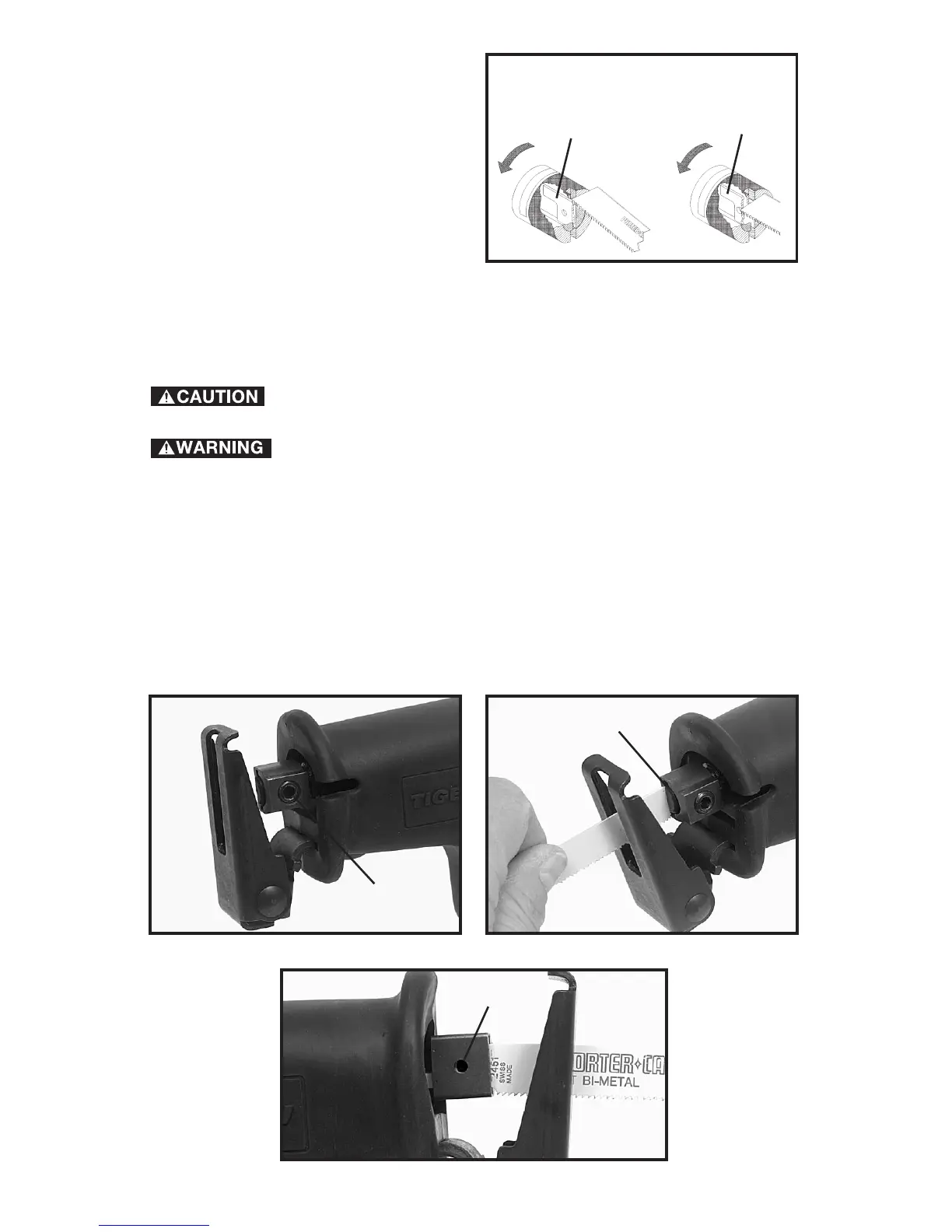 2. Insert the blade into the blade clamp until it bottoms, (A) Fig. 6. When the
