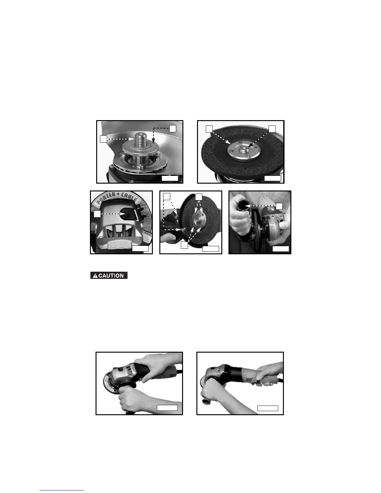 grinding wheel contacts the work. Use light pressure. Always lift the grinder