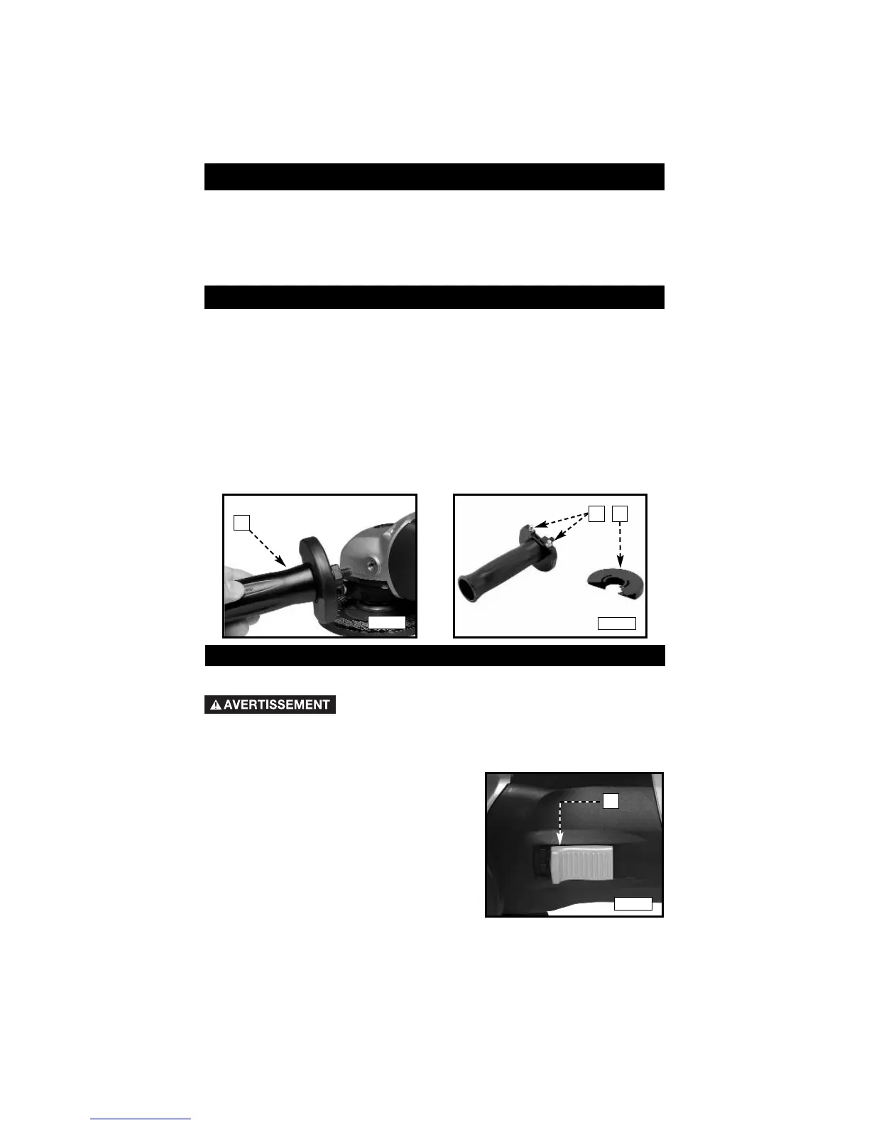 de chaque côté de l'outil. CETTE POIGNÉE DOIT TOUJOURS ÊTRE UTILISÉE