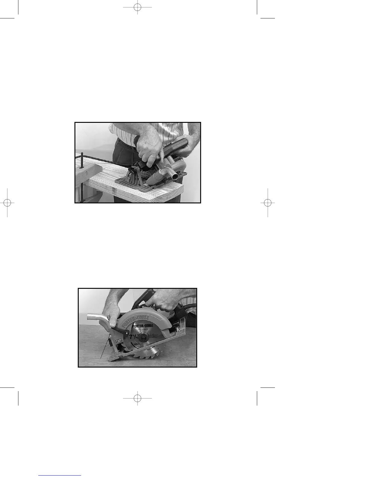work. Hold saw up so blade clears the material. Be sure you have adjusted the