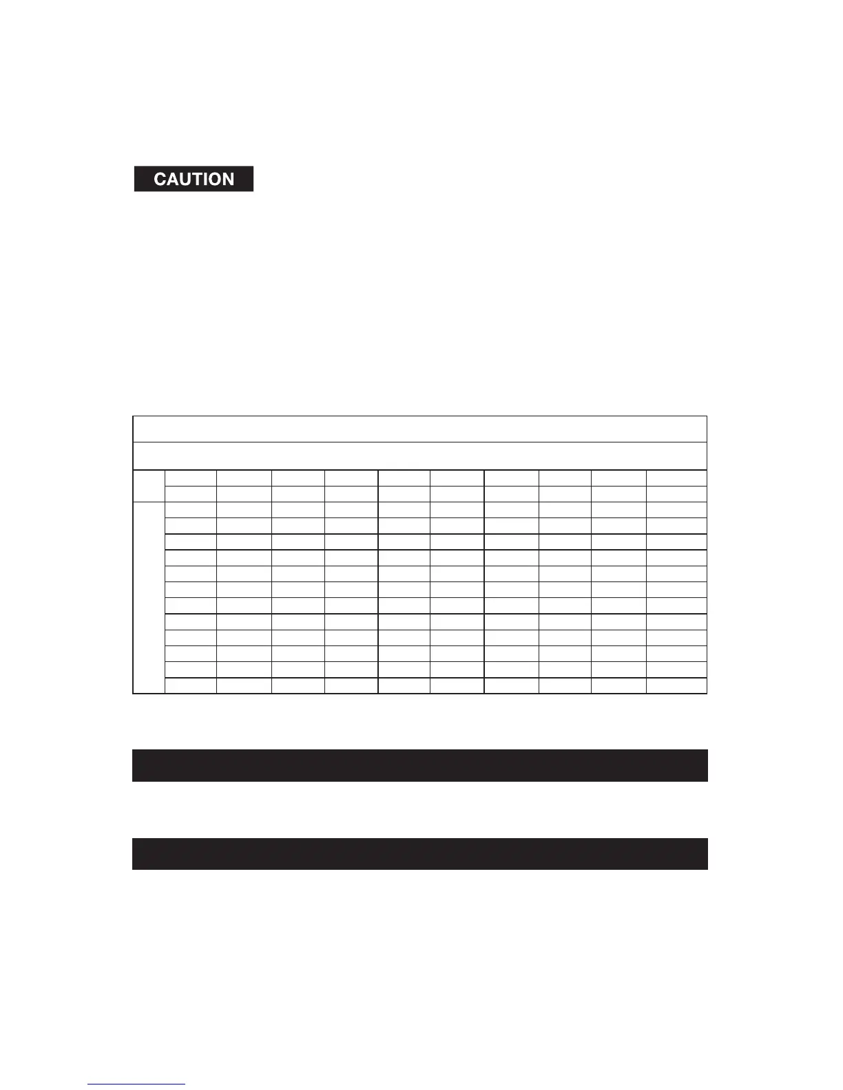 motor damage. A table of recommended extension cord sizes will be found in