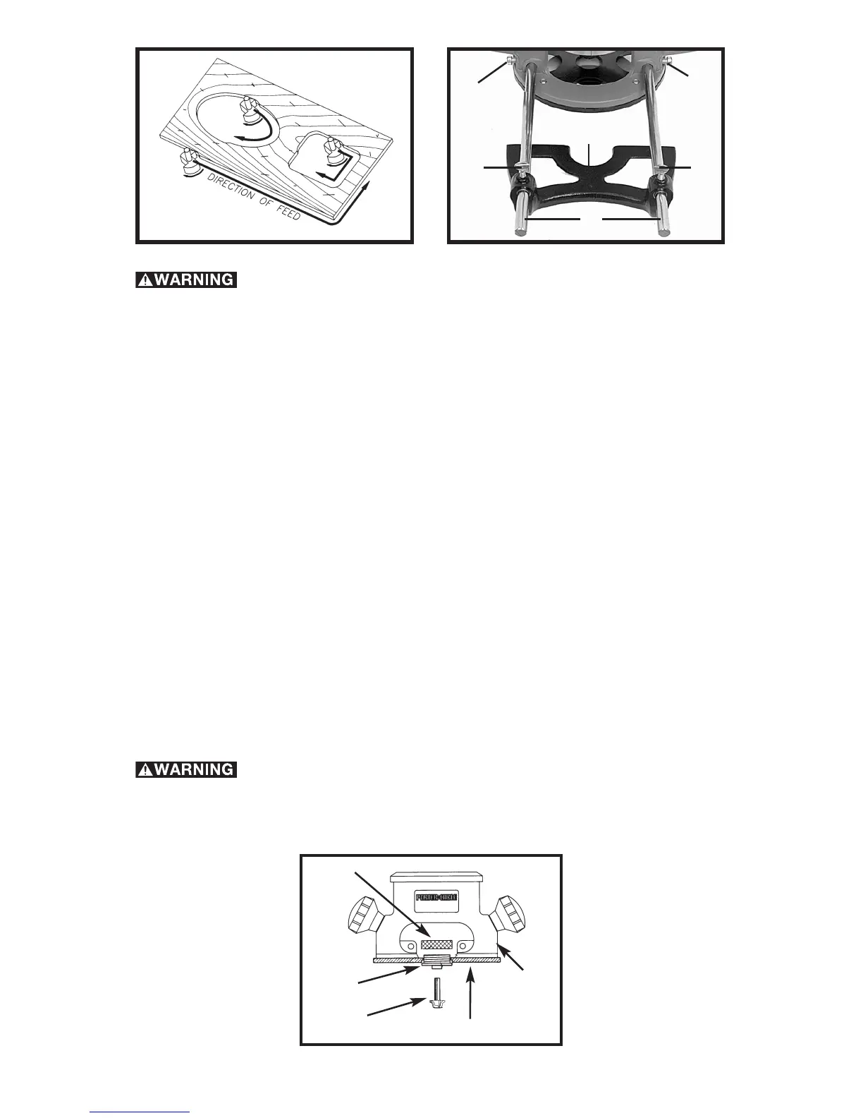 exercise extreme caution to maintain control of router. Make smaller cuts and