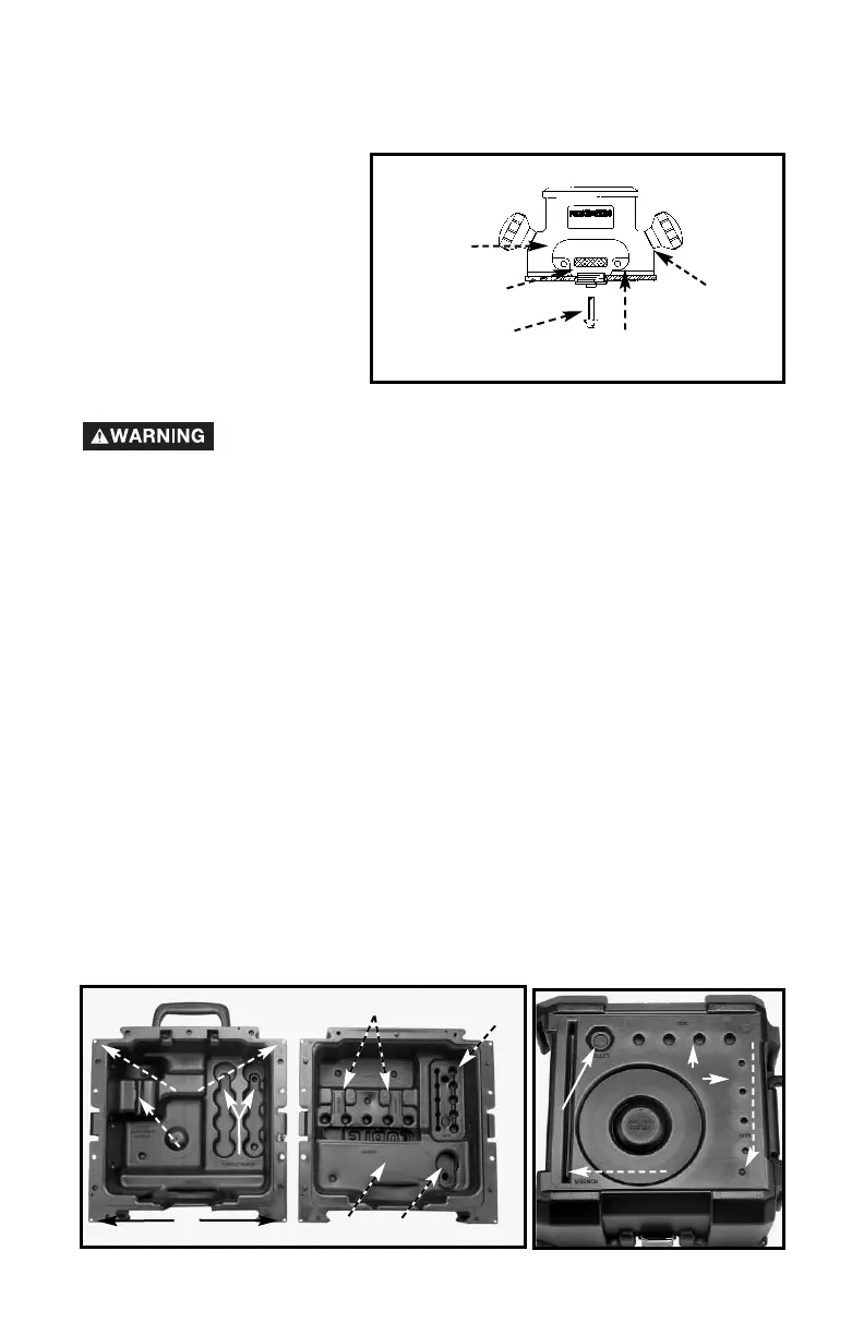 The case provides storage for the collet wrench at (A) Fig. 30, an extra