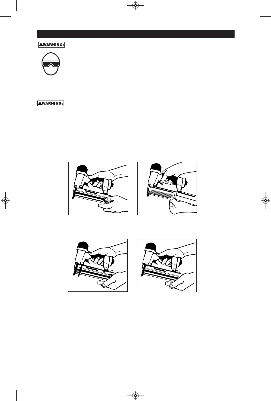 • Do not pull the trigger or depress the trip mechanism while loading the tool.