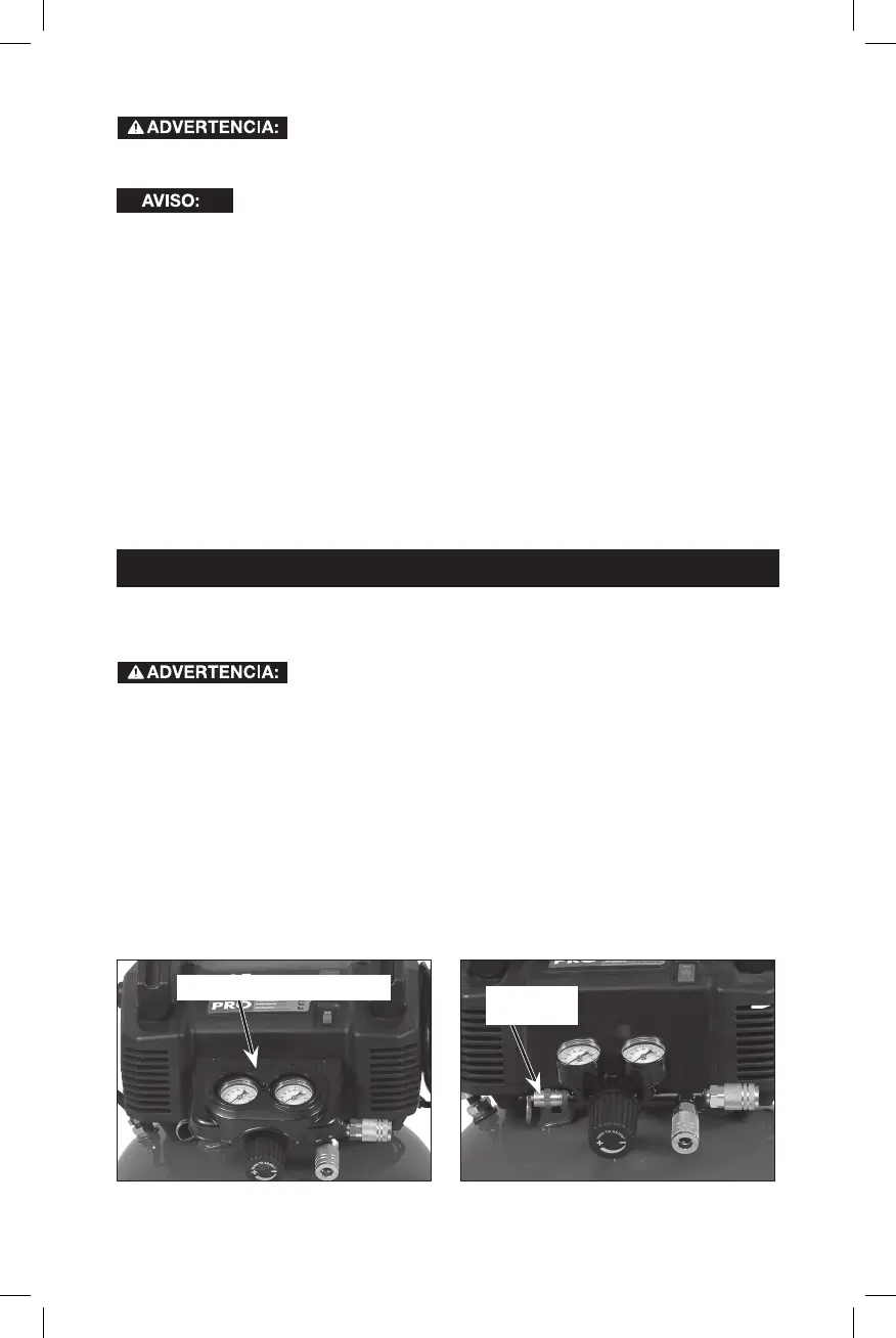 compresor del tomacorriente, drenar la presión de aire del tanque y esperar