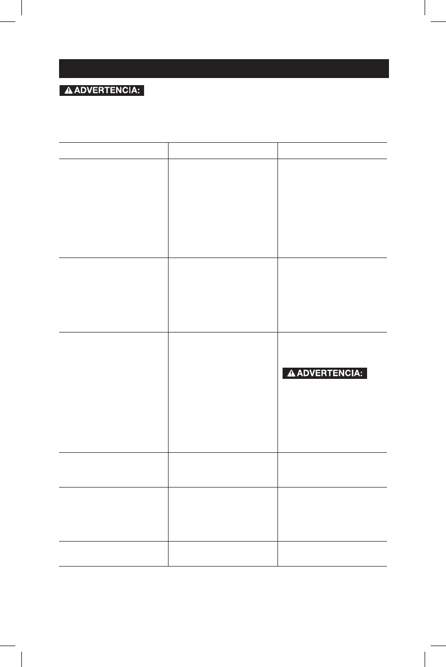 alguna, desenchufe el compresor de aire y purgue toda la presión de aire del