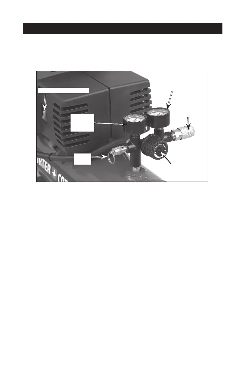 Outlet Pressure Gauge: The outlet pressure gauge indicates the air pressure