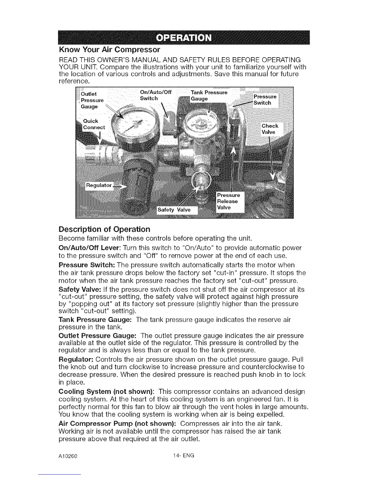 motor when the air tank pressure reaches the factory set "cut-out" pressure.