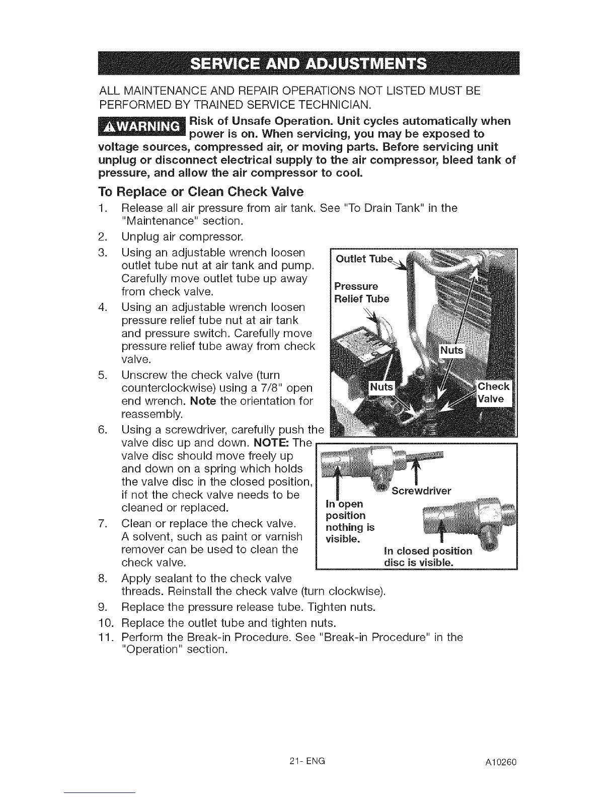 threads. Reinstall the check valve (turn clockwise).