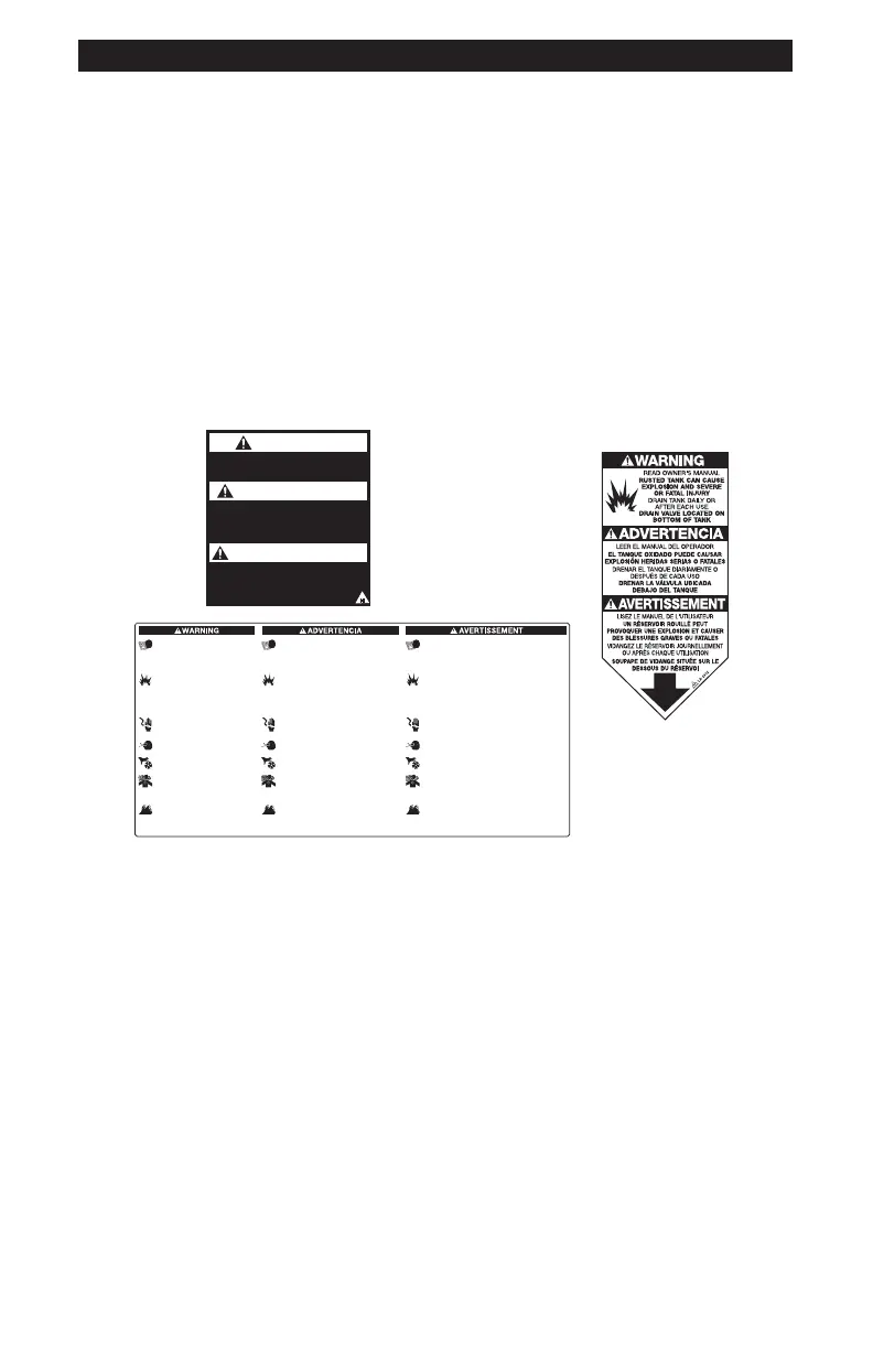 RISK OF FIRE OR EXPLOSION. AIR COMPRESSORS PRODUCE