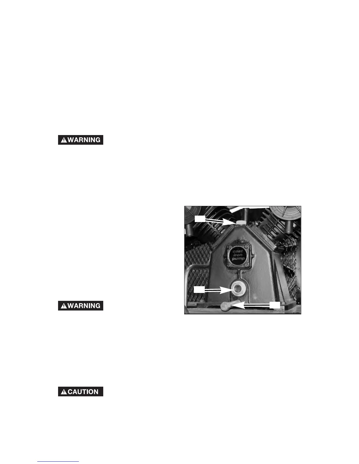6. Drain water from air tank by opening drain valve (counter-clockwise) on