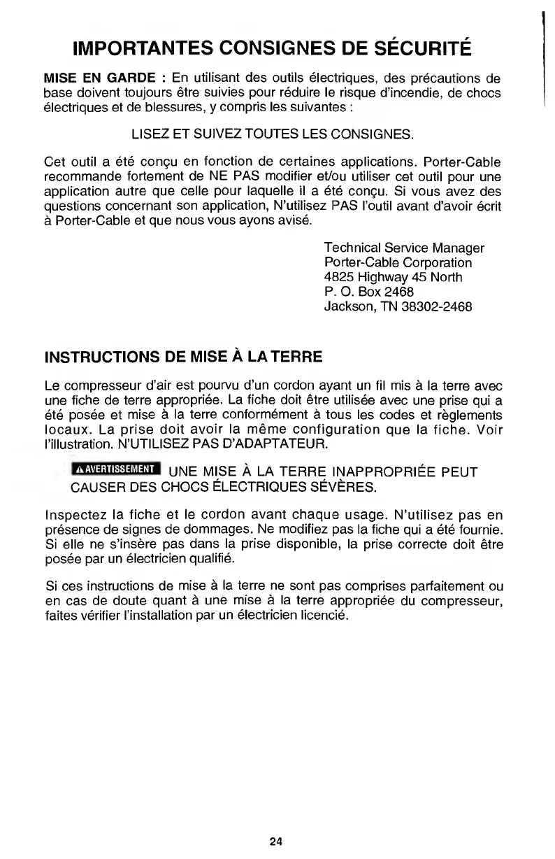 Porter-Cable CF1540 - Importantes Consignes de Securite