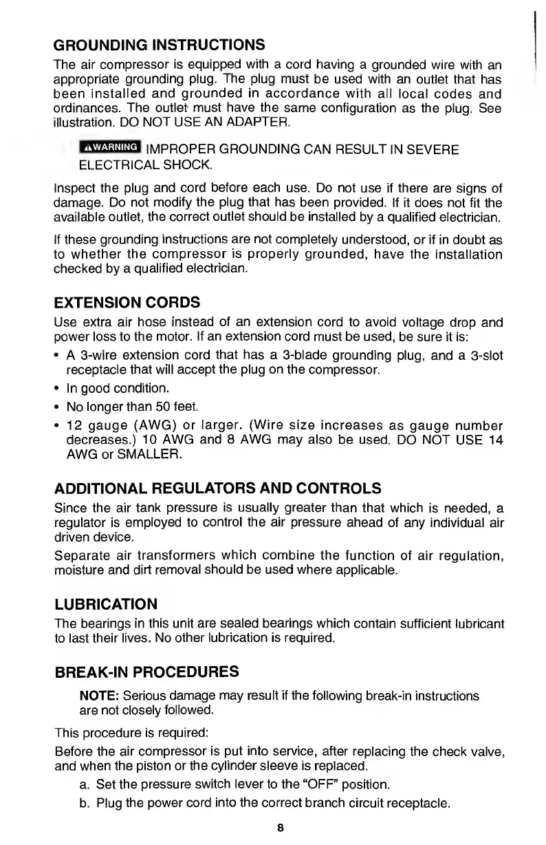 Porter-Cable CF1540 - Extension Cords; Additional Regulators and Controls; Break-In Procedures