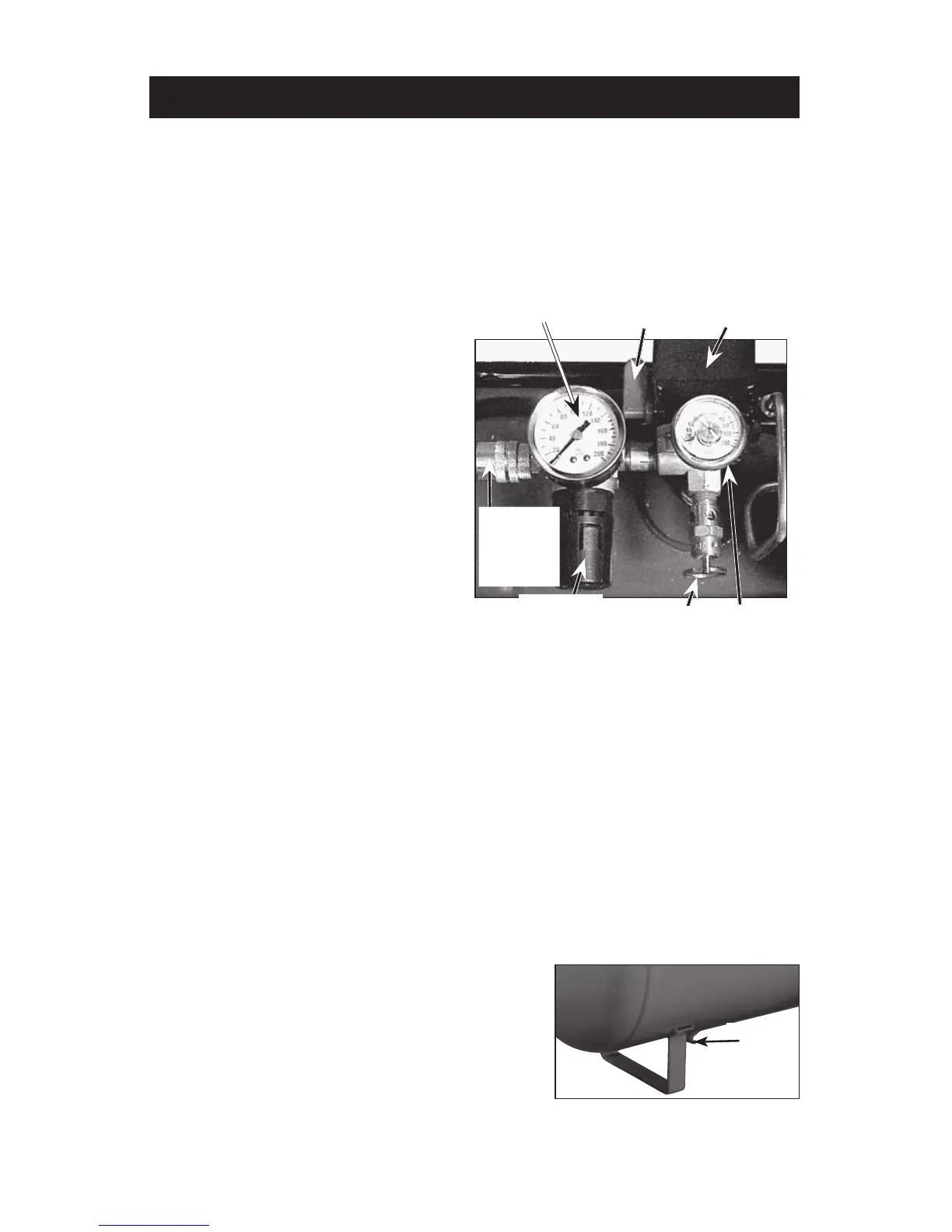 Drain Valve: The drain valve is located at the base of the air tank and is used
