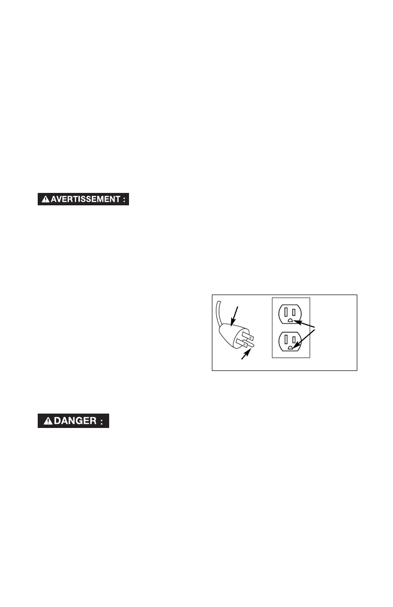 pour le courant électrique. Ce compresseur d'air doit être adéquatement mis à la terre.