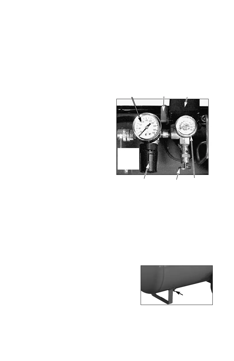 Régulateur : Le régulateur contrôle la pression d'air indiqué sur le manomètre de sortie.