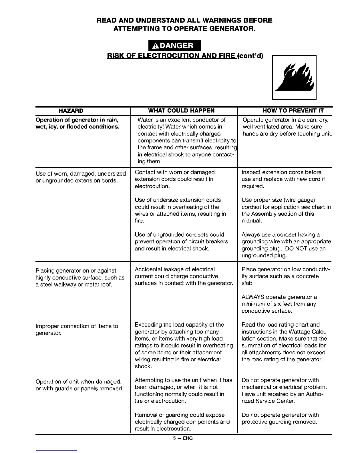 RISK OF ELECTROCUTION AND FIRE (cont'd)