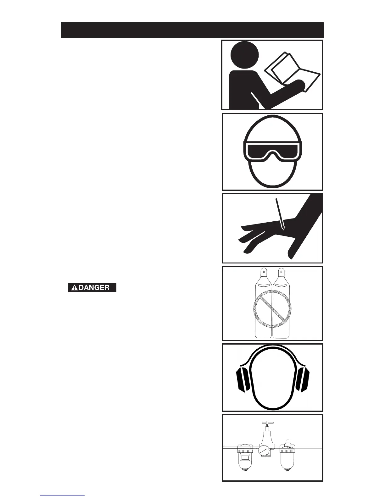 pressed air at 70 to 120 PSI, (4.8 to 8.3