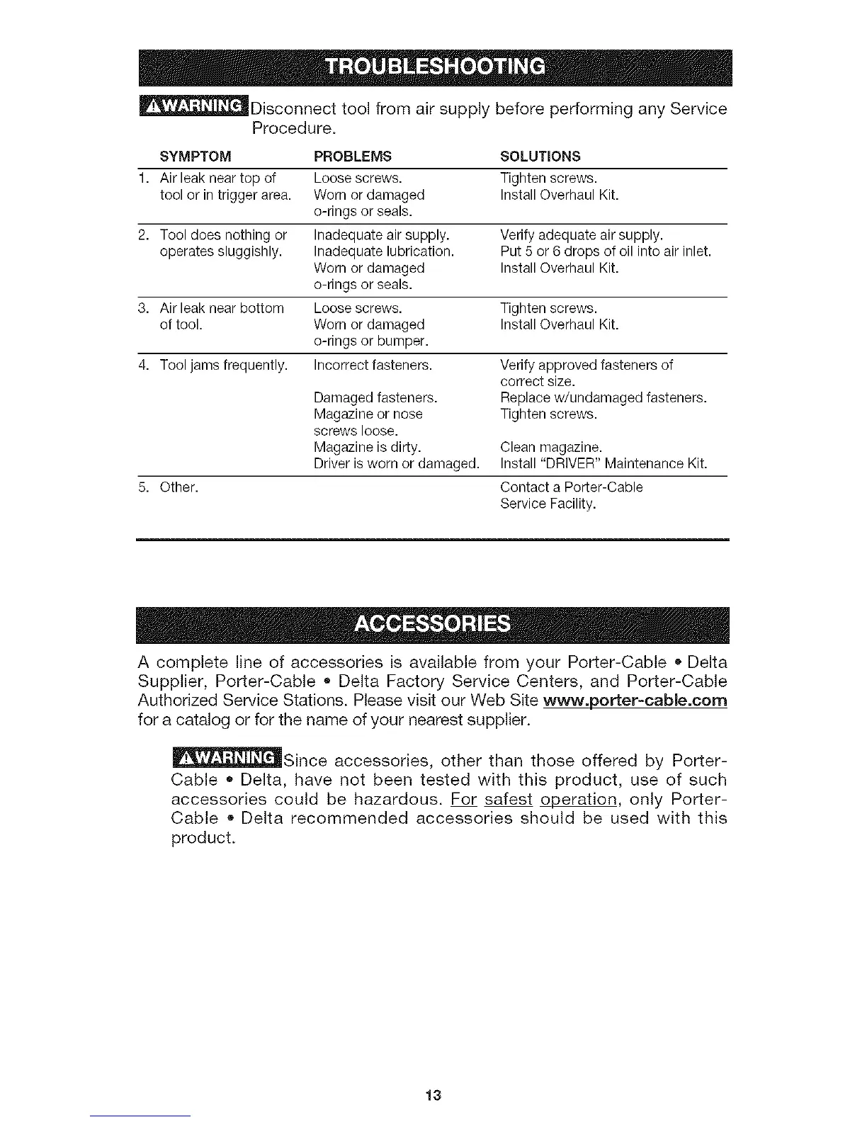 5. Other. Contact a Porter-Cable
