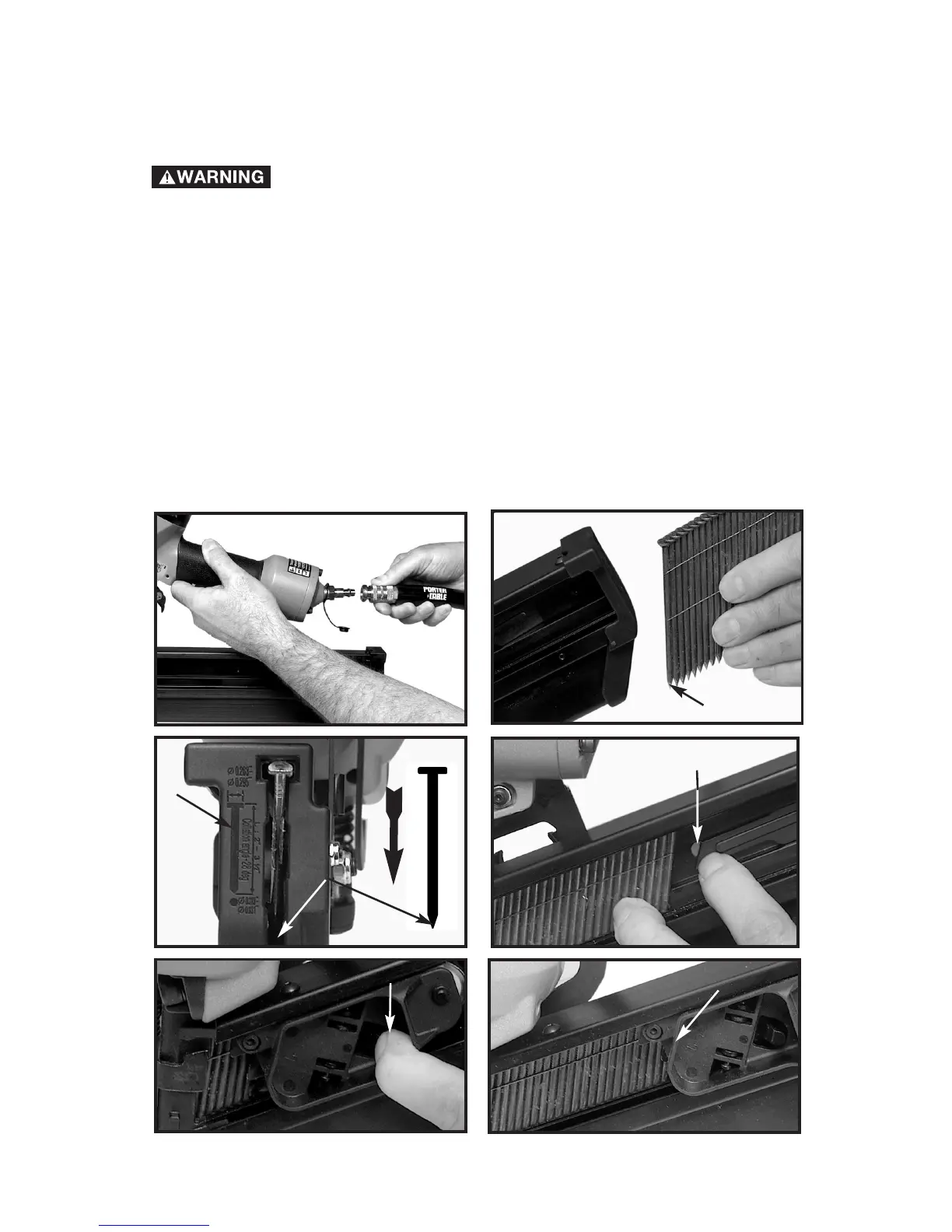 the nail strips to feed the nails into the nail slot of the nose casting. Do not
