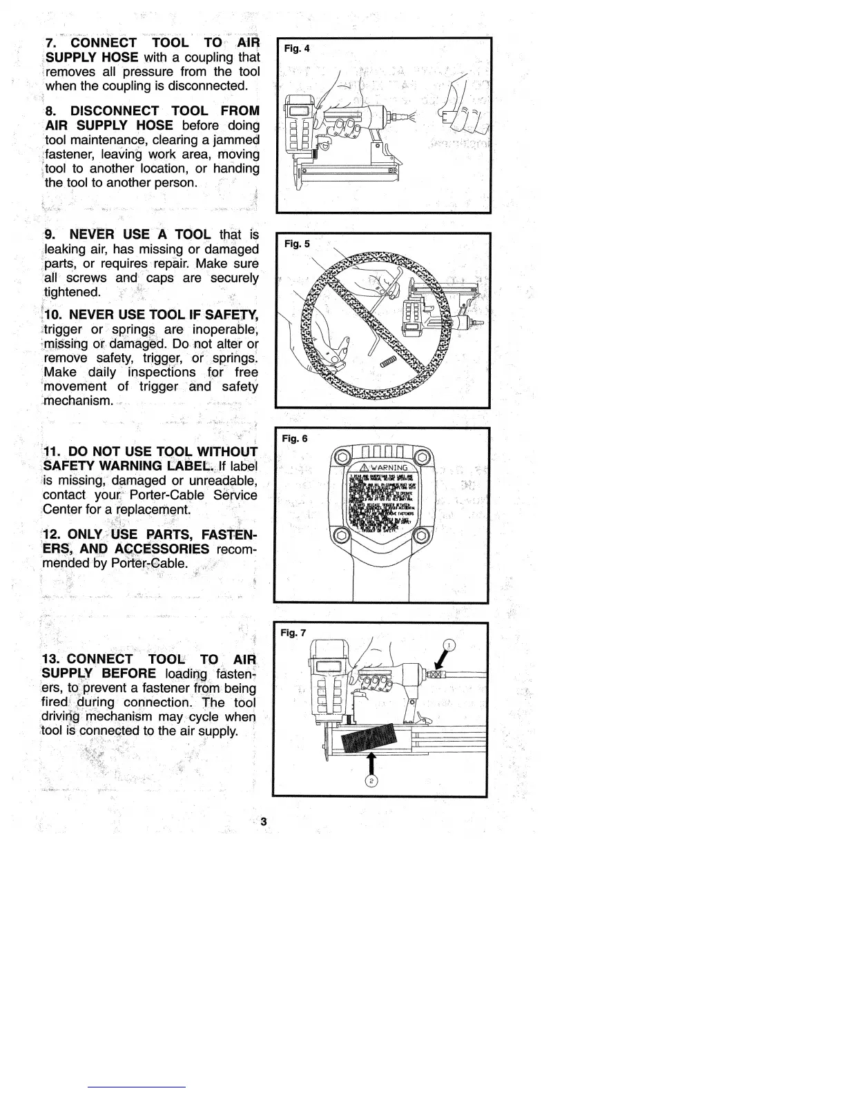 Porter-Cable FN250 - Air Supply Hose Connection; Air Supply Hose Disconnection; Tool Condition Requirements; Safety and Trigger Functionality