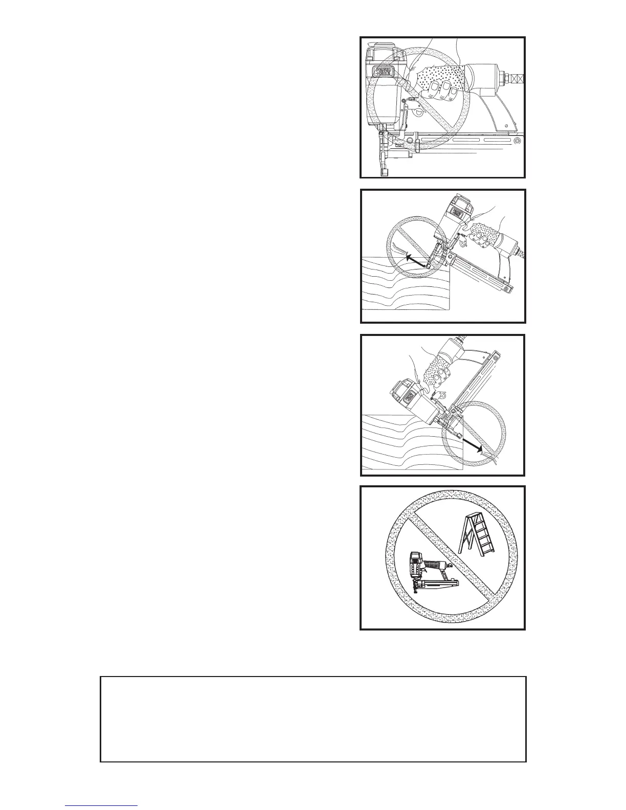 23. Fire fasteners into work surface only: