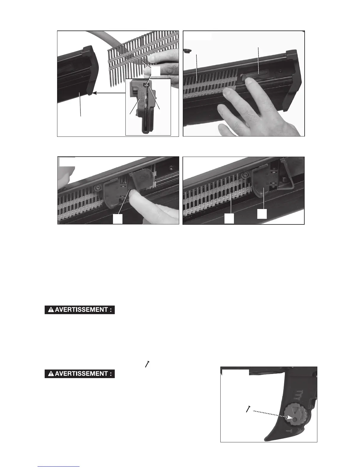 quatre clous du chargeur. Si les clous n’en sont pas retirés et que l’outil est rechargé et