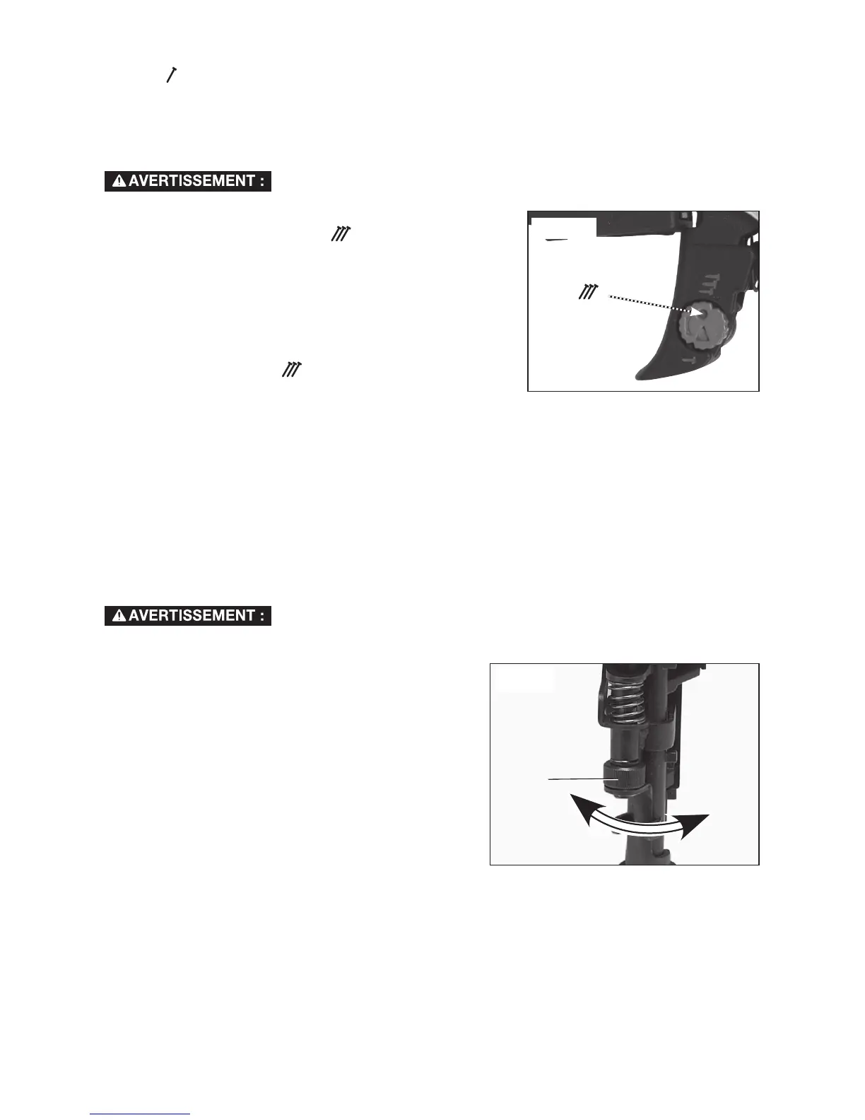 2. Pour enfoncer le clou plus profondément, tourner la molette de réglage de profondeur