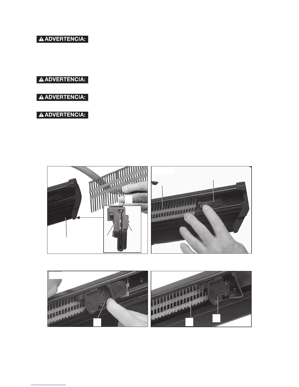 NOTA: No permita que el impulsor vaya hacia adelante contra la tira de clavos, de lo